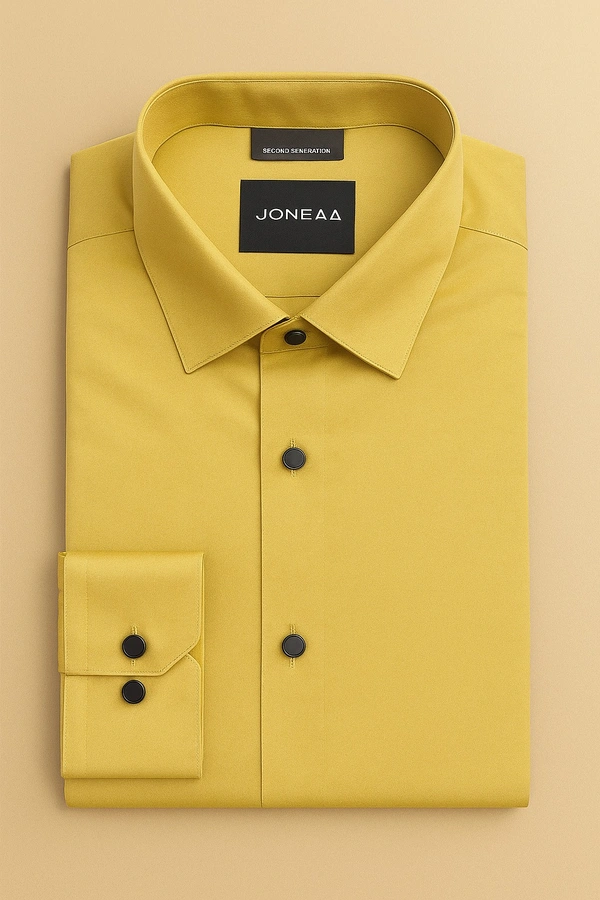 Add a pop of bold sophistication to your collection with this mustard yellow satin shirt by JONEAA. Featuring a silky-smooth finish and subtle shine, this shirt is designed to turn heads at parties, festive events, or evening outings. The sleek fit, sharp collar, and glossy fabric make it a perfect choice for men who love to blend elegance with color.